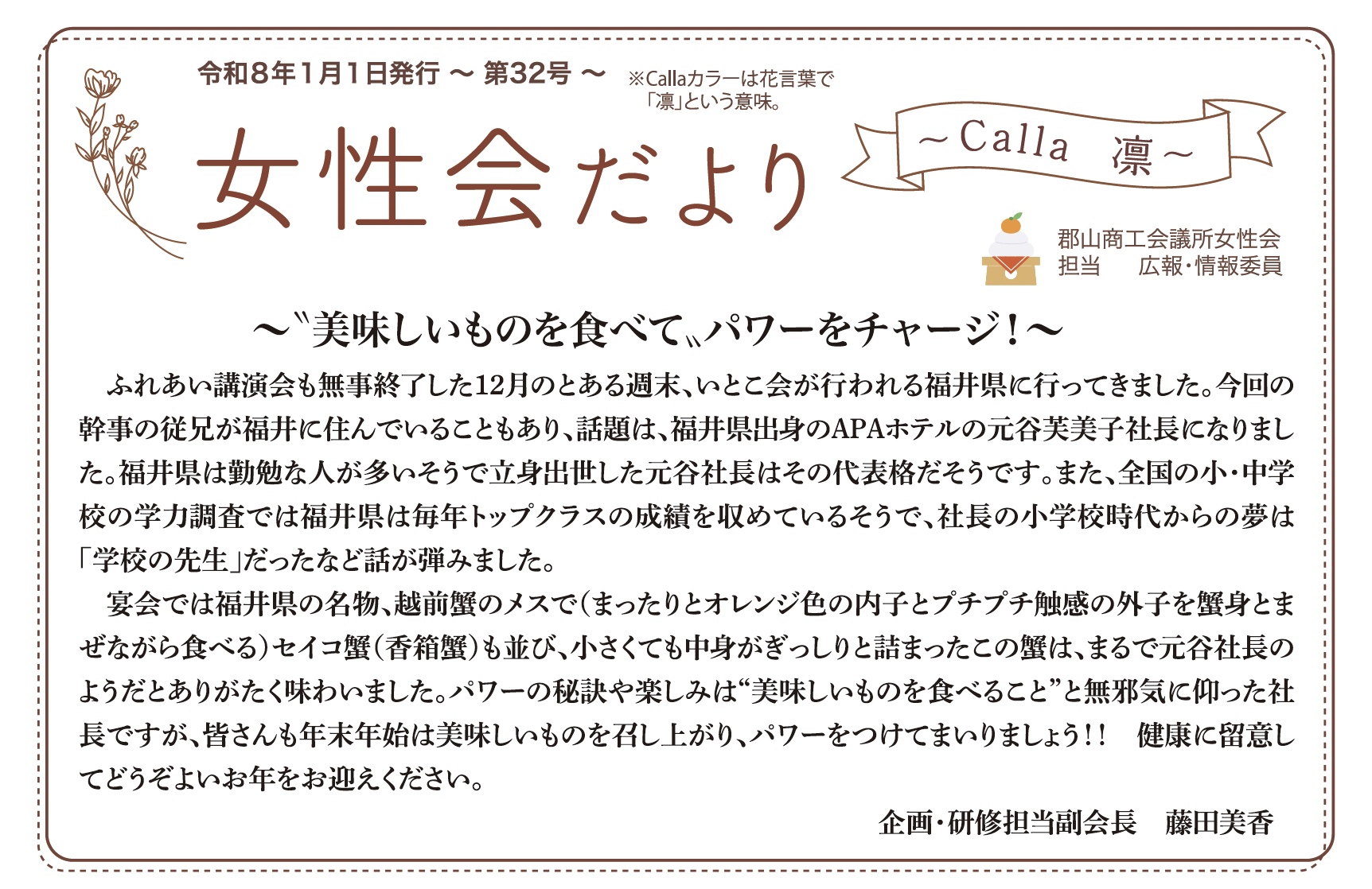 令和8年1月1日に第32号女性会だよりを発行いたしました。