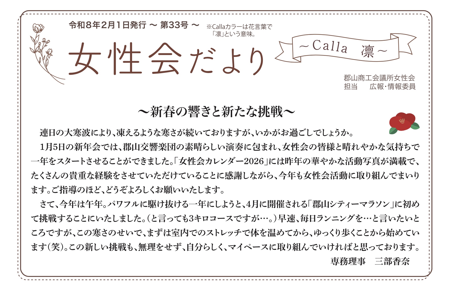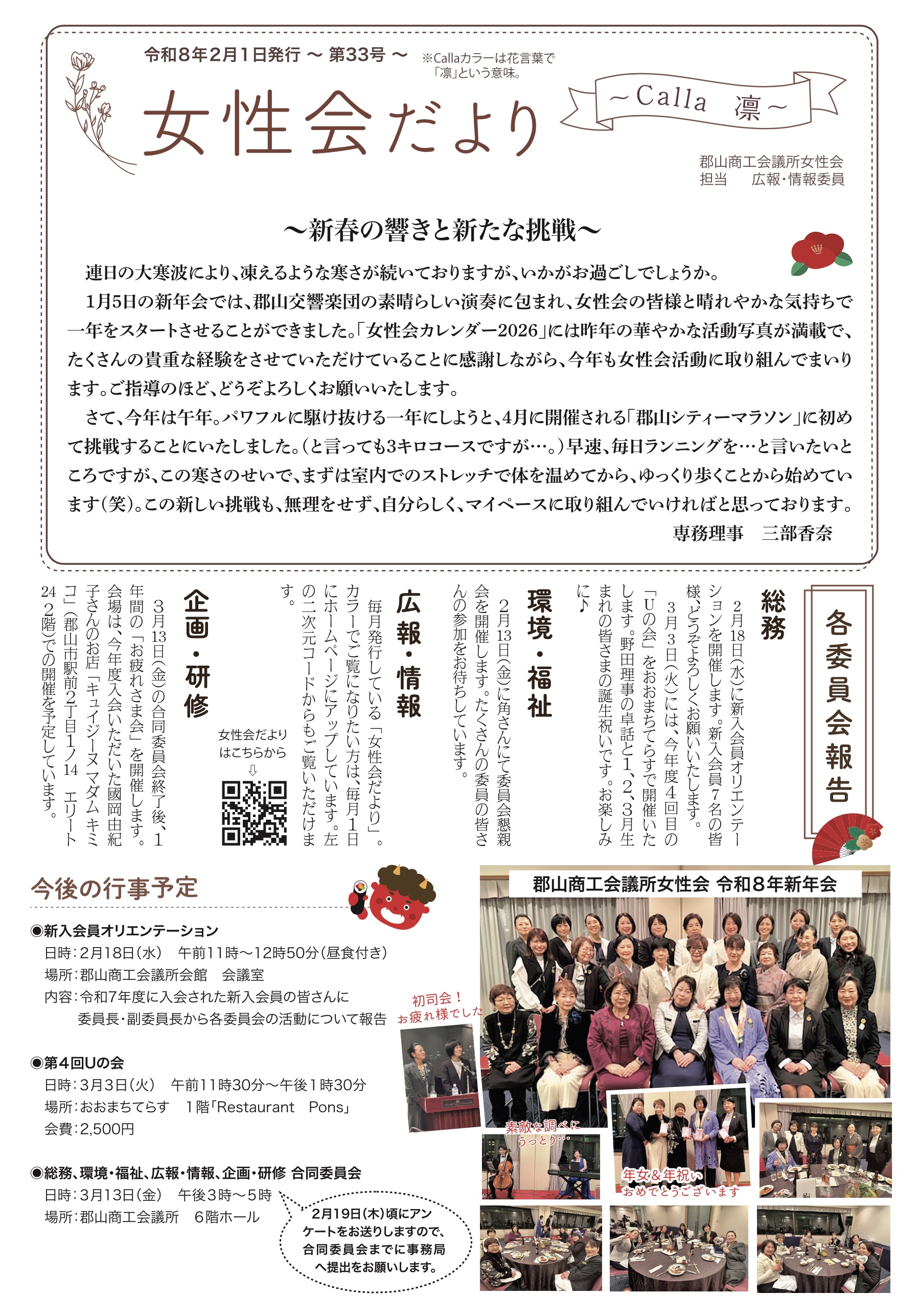 令和8年2月1日に第33号女性会だよりを発行いたしました。
